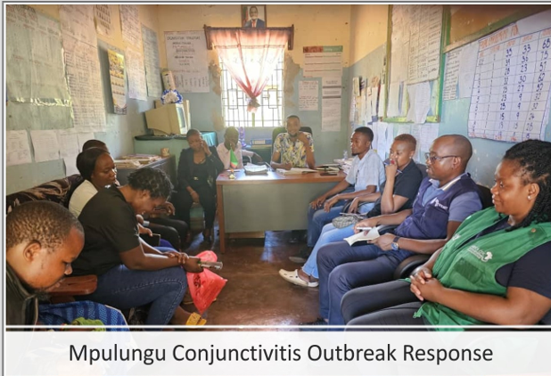 Conjunctivitis Outbreak Investigation Response Preparation meeting in Mpulungu district at Mpulungu Urban Health Centre, Northern Province in April, 2024. The outbreak investigation for conjunctivitis helped identify the source and mode of transmission, enabling targeted public health interventions. As a result, appropriate control measures, such as improved hygiene practices, public awareness campaigns were implemented successfully to mitigate the spread